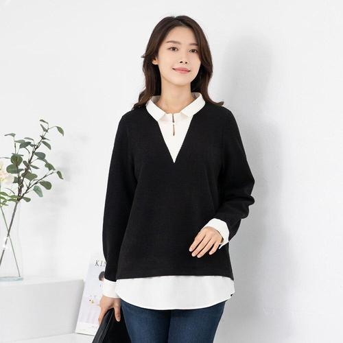 [모슬린]엄마옷 카라 골지배색 티 블라우스 516FGH386 마담/중년여성/빅사이즈/50대/60대