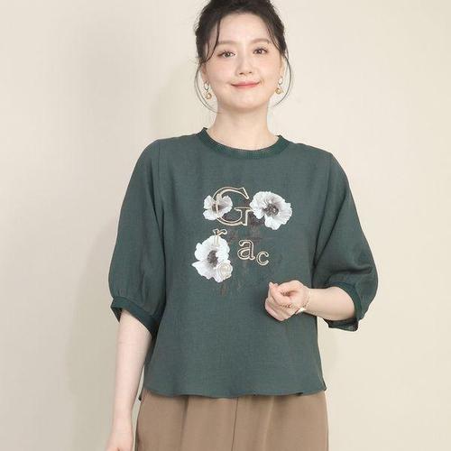[애비뉴투지]엄마옷 플라워 프린팅 라운드 여성 여름 간절기 5부 칠부 블라우스 B09549