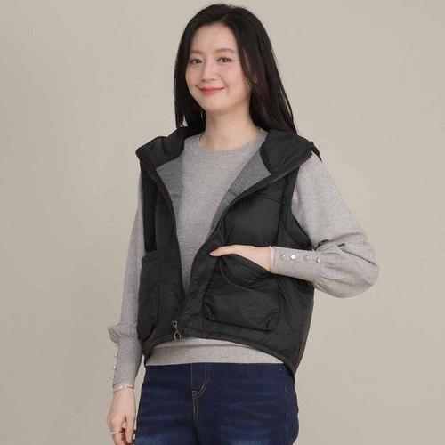 [애비뉴투지]엄마옷 오리털 후드 다이아 누빔 주머니 여성 봄 가을 겨울 퀼팅 경량 패딩 조끼 V11437