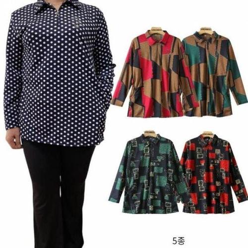 [셀러허브_여성트랜드패션]Rly 큐빅 빅사이즈옷 간절기 엄마티 카라 셔츠 빅사