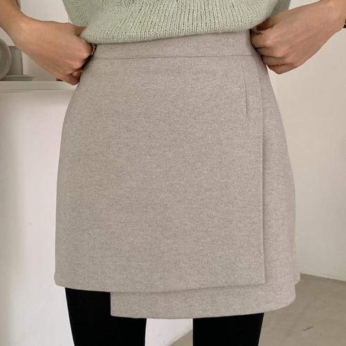 아이미마인 / 모던 벨트세트 A라인 랩 미니스커트 큐롯 겨울 모직 치마반바지 (2color)