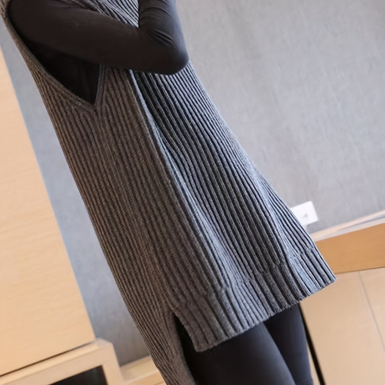 TEMU 새로운 여성 패션, 우아하고 편안한 터틀넥, 따뜻하고 넉넉한 핏의 민소매 스웨터 조끼 탑