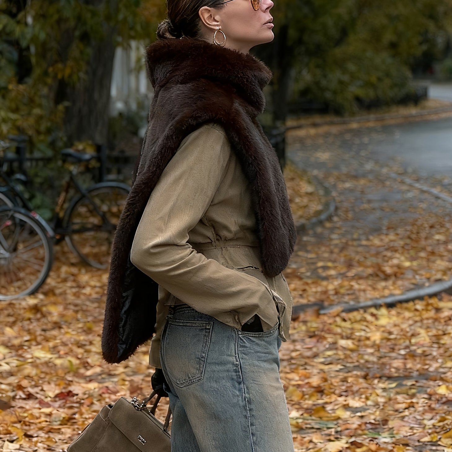 TEMU 새로운 여성 패션, 우아하고 편안함, 따뜻한 칼라, 루즈핏 민소매 스웨터 조끼 탑
