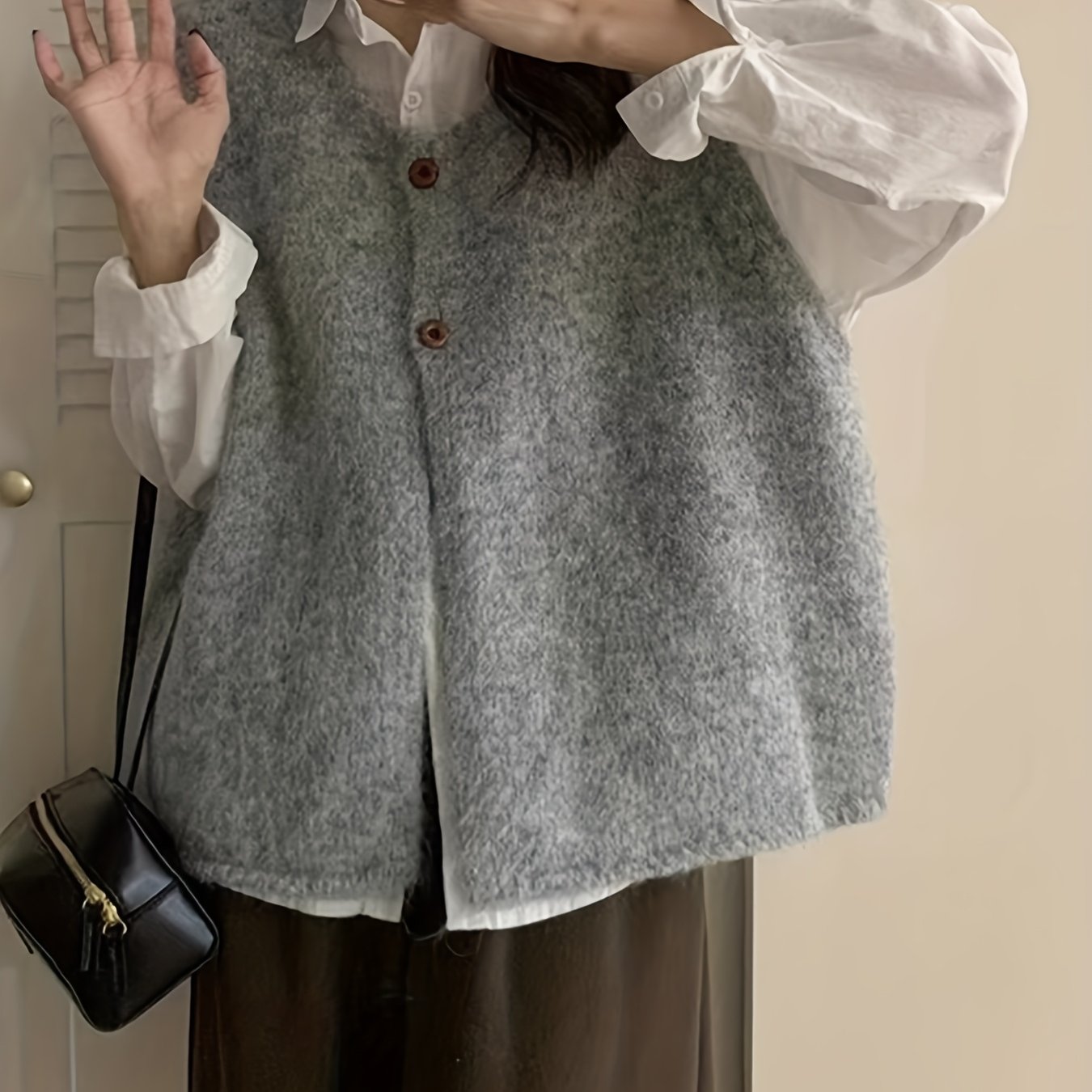 TEMU 솔리드 컬러 여성 라운드넥 베스트 캐주얼 레이어링 스웨터 2025 가을 겨울 탑