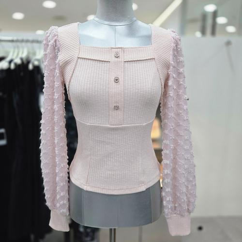 [에고이스트]소매 레이스 퍼프 티셔츠 ER4JT001_DG