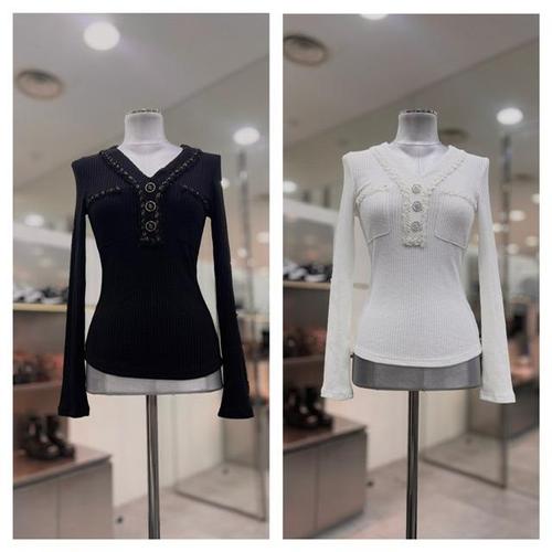 [에고이스트][BLUE LABEL] 리본 메쉬 러플 티셔츠 ER3OTL05