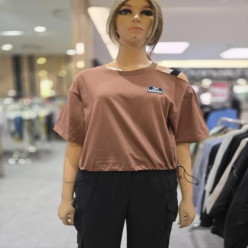 [에고이스트][에고이스트] 어깨트임 와펜 포인트 스트링 크롭 티셔츠 ER3CH-261 (P003631288)