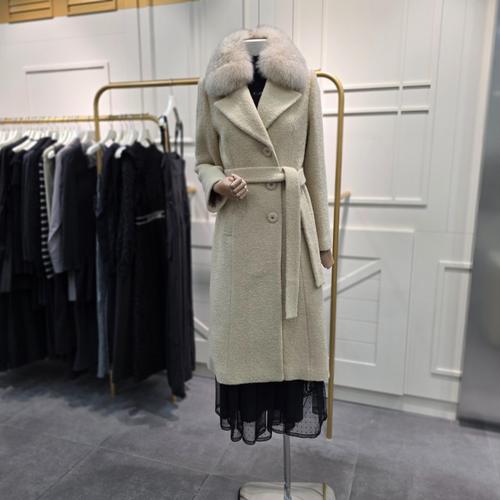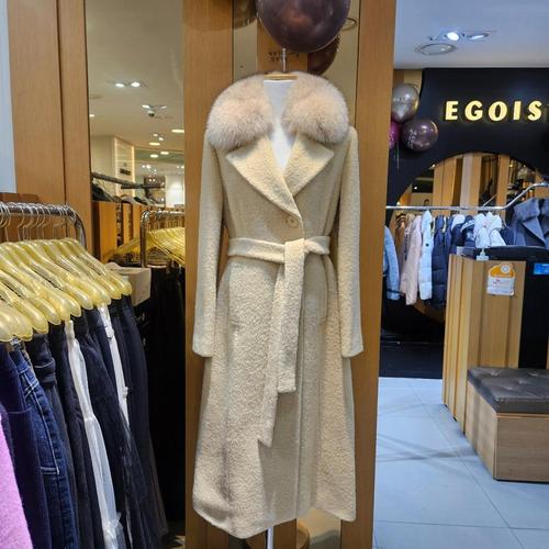 에고이스트 아이보리 폭스 퍼 카라 금속장식 코트 EN4WC260
