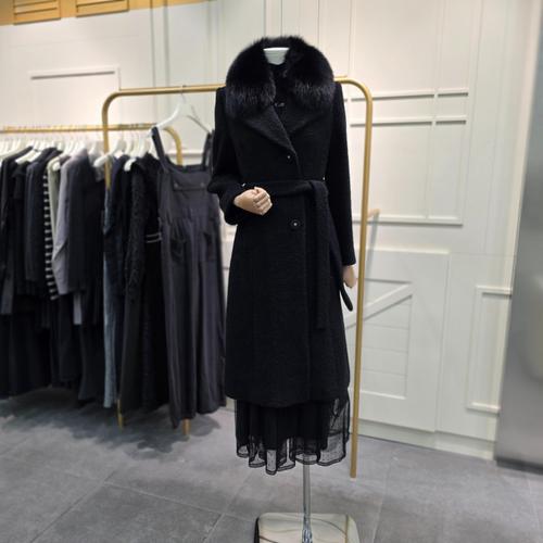 [에고이스트]리얼 퍼 카라 슬림 롱 코트 EQ4WC060BK_CA
