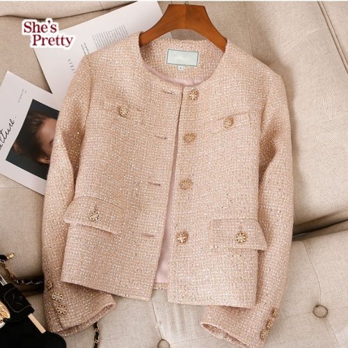 2026 트위드 코리아 고품질 숏 트위드 재킷 여성 한국 의류 싱글 브레스티드 레이디 블레이저 올매치 캐주얼 코트 탑