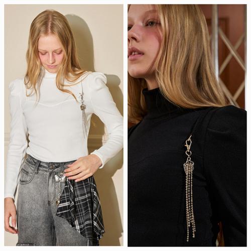 [에고이스트]목폴라 장식 언발 티셔츠 ER4OTL53_DG