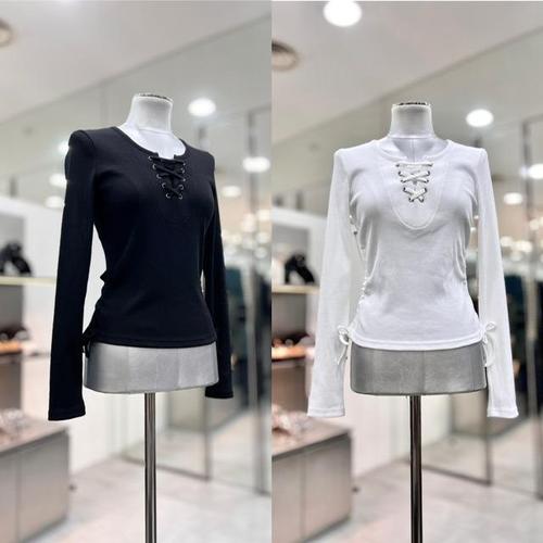 [에고이스트][BLUE LABEL] 넥 라인 배색 레이스업 티셔츠 ER3OTL06