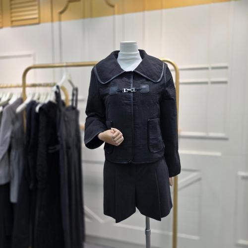 에고이스트 블랙 사선퀼팅 텍스처 벨티드 숏 구스다운점퍼 EQ4TD001