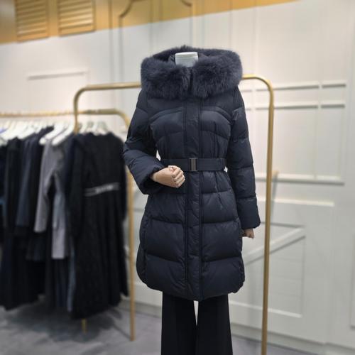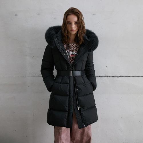 [에고이스트]슬림 웨이스트 폭스퍼 구스 롱 다운점퍼 ER4TD504BK