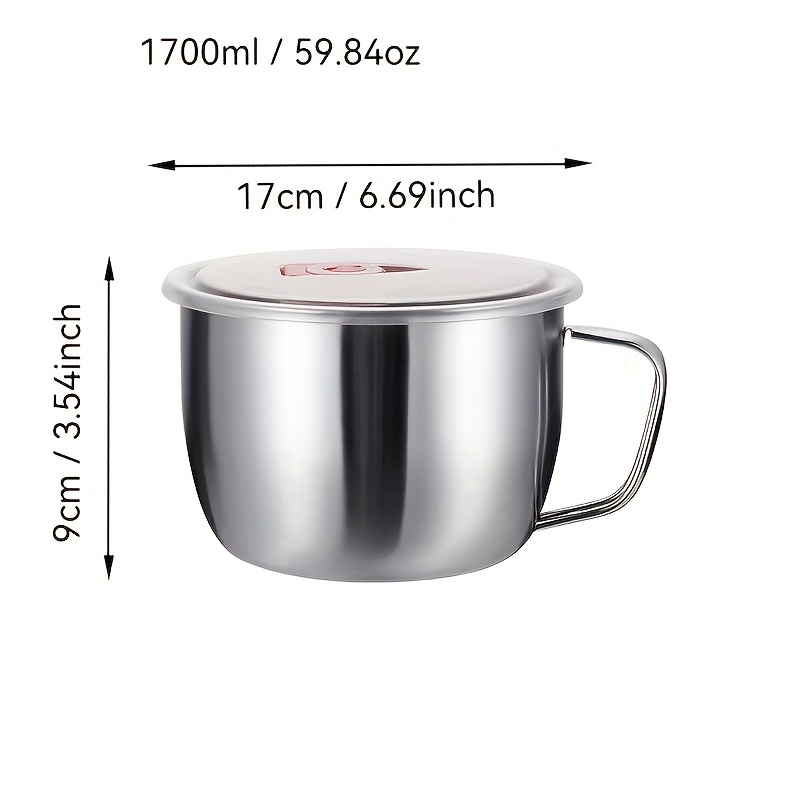TEMU 1개 스테인리스 스틸 인스턴트 누들 볼, 스파게티 볼, 손잡이가 있는 누들 볼, 다기능 누들 볼, 도시락, 1500ml, 1700ml 누들 볼