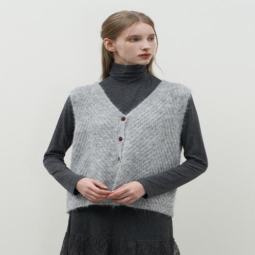 [미니멈에브리데이][미니멈 에브리데이]베이직 버튼업 V넥 니트 베스트 (EB4VW001D)