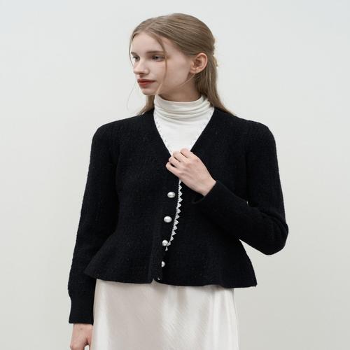 [미니멈에브리데이][미니멈 에브리데이]레이스 라인 배색 V넥 니트 가디건 (EB4CK031D)