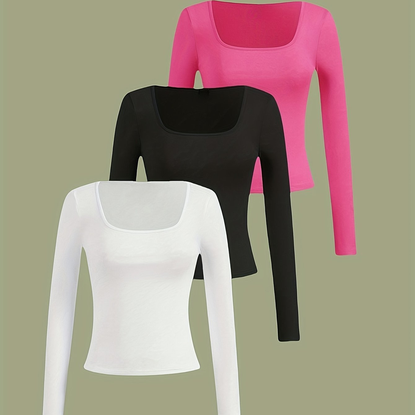 TEMU 심플하고 스타일리시한 스퀘어넥 디자인의 여성용 긴팔 상의 3종 세트