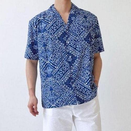 [셀러허브_여성트랜드패션]루즈핏 의류 시원한 스타일 남방 여름 비치 반팔 남성 셔츠 에스닉