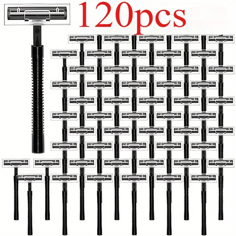 TEMU 120팩 남성용 일회용 면도기 - 스테인리스 블레이드 & 휴대용 검정색 면도기, 수염 및 콧수염 정리용, 개별 포장된 여행용 일회용 면도기, 캠핑, 호텔, 이동 중 그루밍용 (남성용 대량 팩)