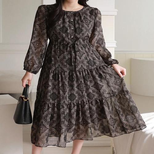 [엠그라프]에스닉 페이즐리 플리츠 쉬폰 롱 원피스
