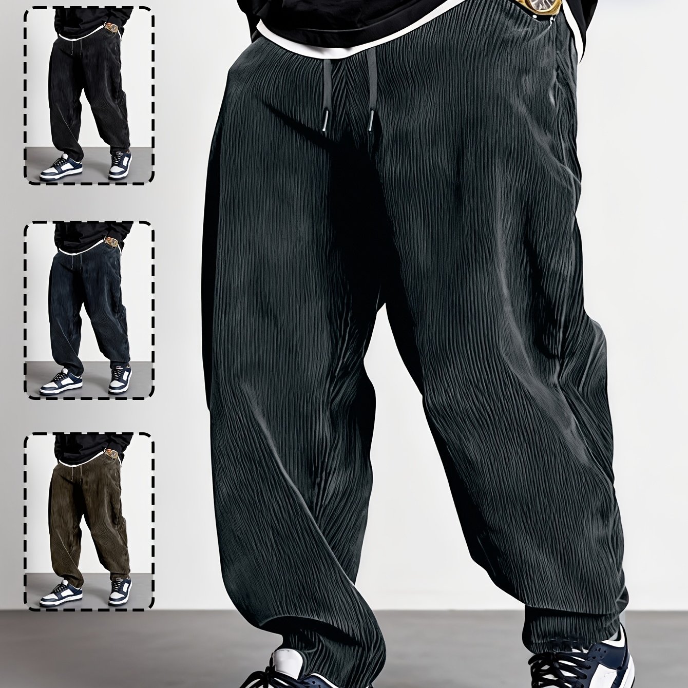 TEMU 남성용 신상 사계절 코듀로이 팬츠 1개, 루즈핏 스트레이트핏 레트로 캐주얼 바지, 부드럽고 편안한 원단, 블랙/그레이블루/브라운 다양한 색상 옵션