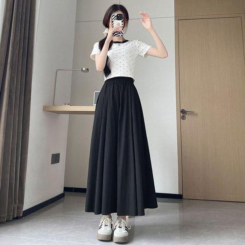 [에이치플러스몰]롱스커트 A라인 편한 여행룩 데이트 허리밴딩 롱치마