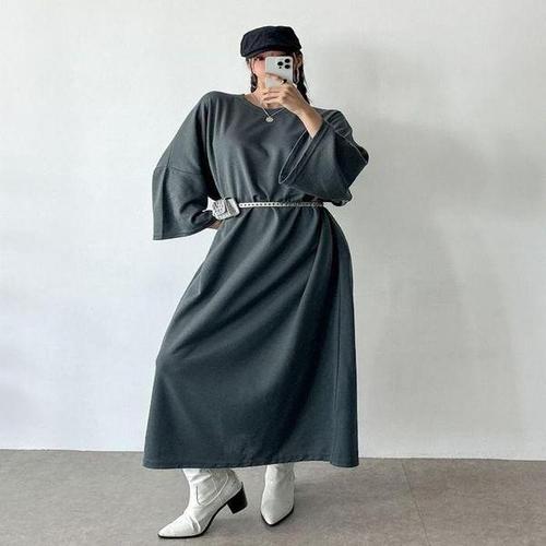 [유야]캐주얼 니트 긴팔 롱 원피스 데일리룩 오피스룩 -OP0138H- 빅사이즈 루즈핏 여성 가을
