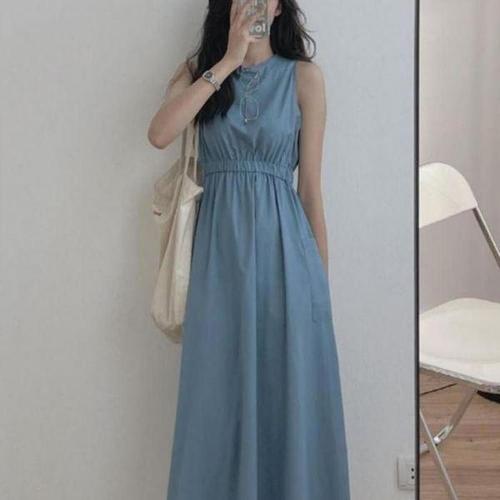 [셀러허브_여성트랜드패션]ONM 나시 롱 원피스 맨소매 무지 캐주얼룩 데일리 셔
