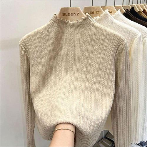 여성 페미닌 프릴 반목티 하프넥 긴팔니트 슬림핏 이너 WFL8U00