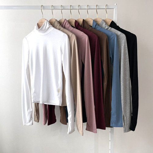 글램핏 / 1+1 여성 기본 슬림 스판 목폴라 워머 긴팔티 8컬러