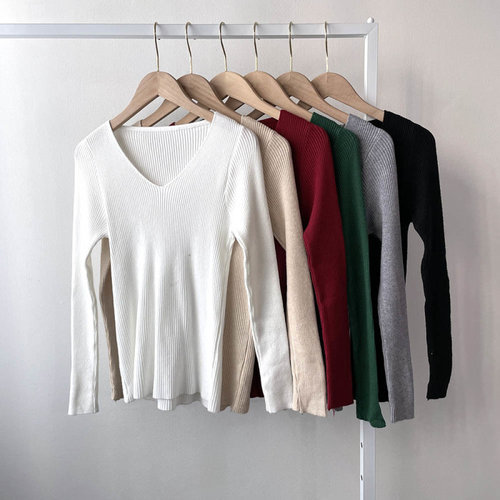 [다잇템]여자 가을긴팔티 슬림핏 골지 U넥 베이직 니트