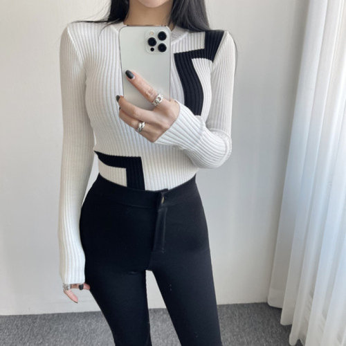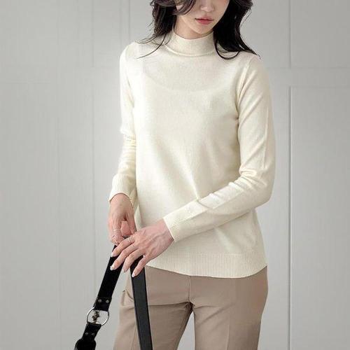[옷자락]여성 슬림핏 반목 니트 긴팔 티셔츠 가을 기본 디자인
