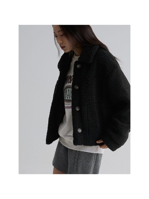 [에잇세컨즈] 시어링 칼라넥 숏 코트블랙 (355Y3VLY15)