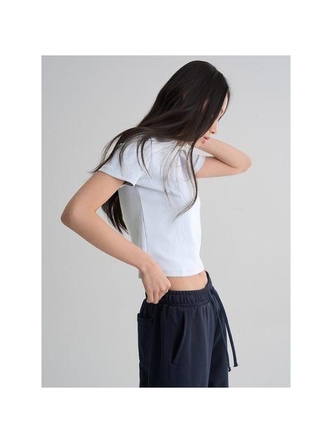 (355742LY21) [에잇세컨즈] 코튼스판 크롭 반소매 티셔츠 화이트