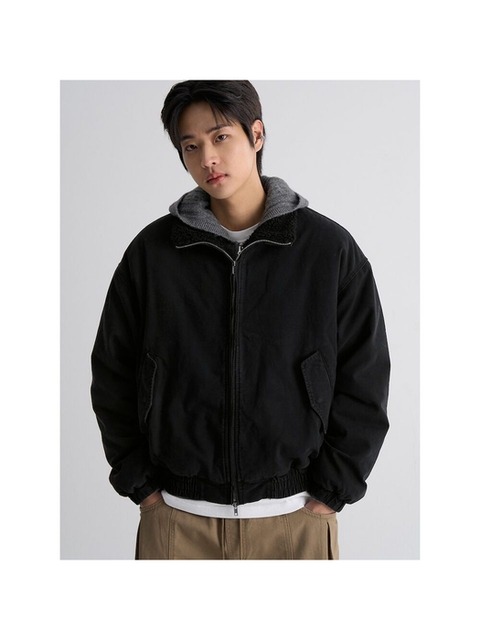 에잇세컨즈 8SECONDS 가먼트워싱 옥스포드 플리스 패딩 블루종 블랙 456Z39SC15 404638