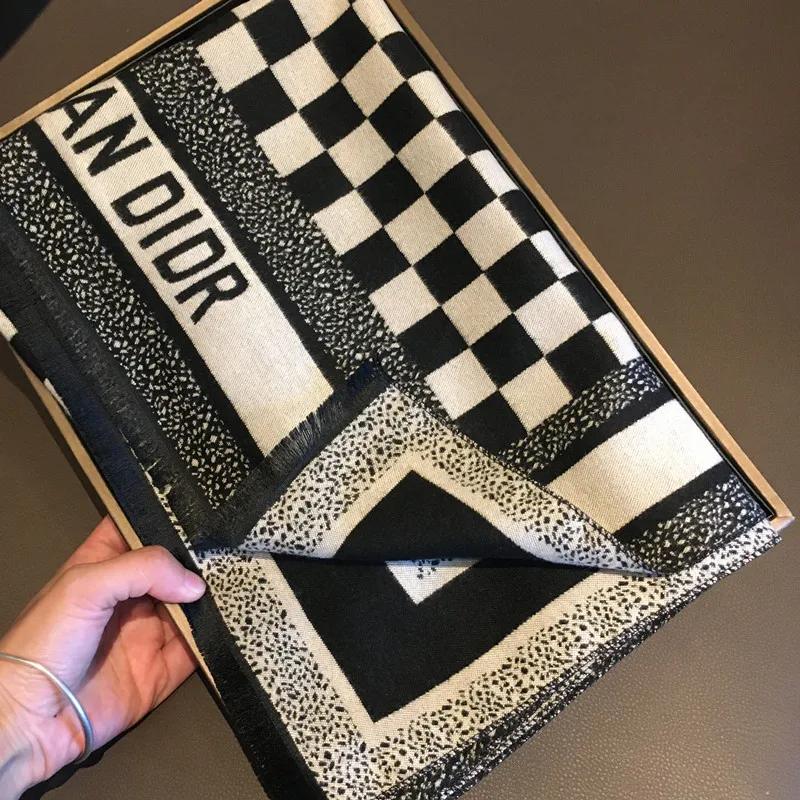 TEMU 대형 가을/겨울 클래식 블랙 앤 화이트 기하학 패턴 양면용 보온 스카프 |, 우아한 스타일, 손세탁 또는 드라이 크리닝, 방풍 및 장식용