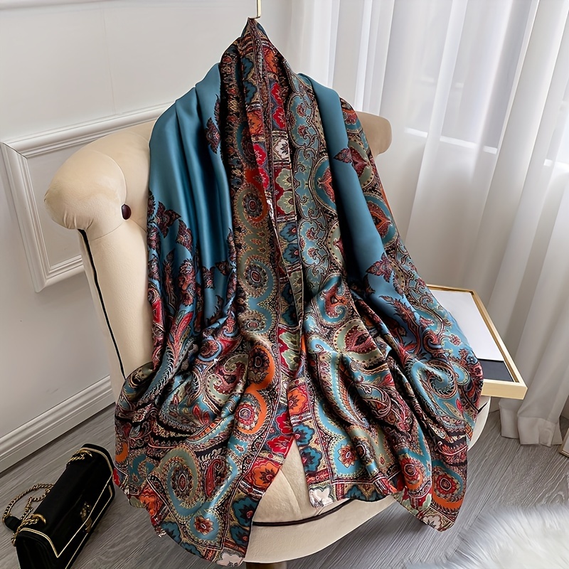 TEMU 여성을 위한 새로운 새틴 대형 스카프 숄, 봄과 가을에 적합, 가을과 겨울에 다용도로 사용 가능, 한국 스타일