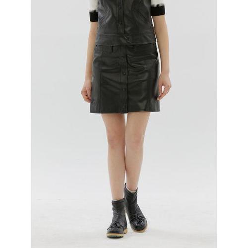 [세인트나인]여성 에코레더 A라인 스커트 BLACK