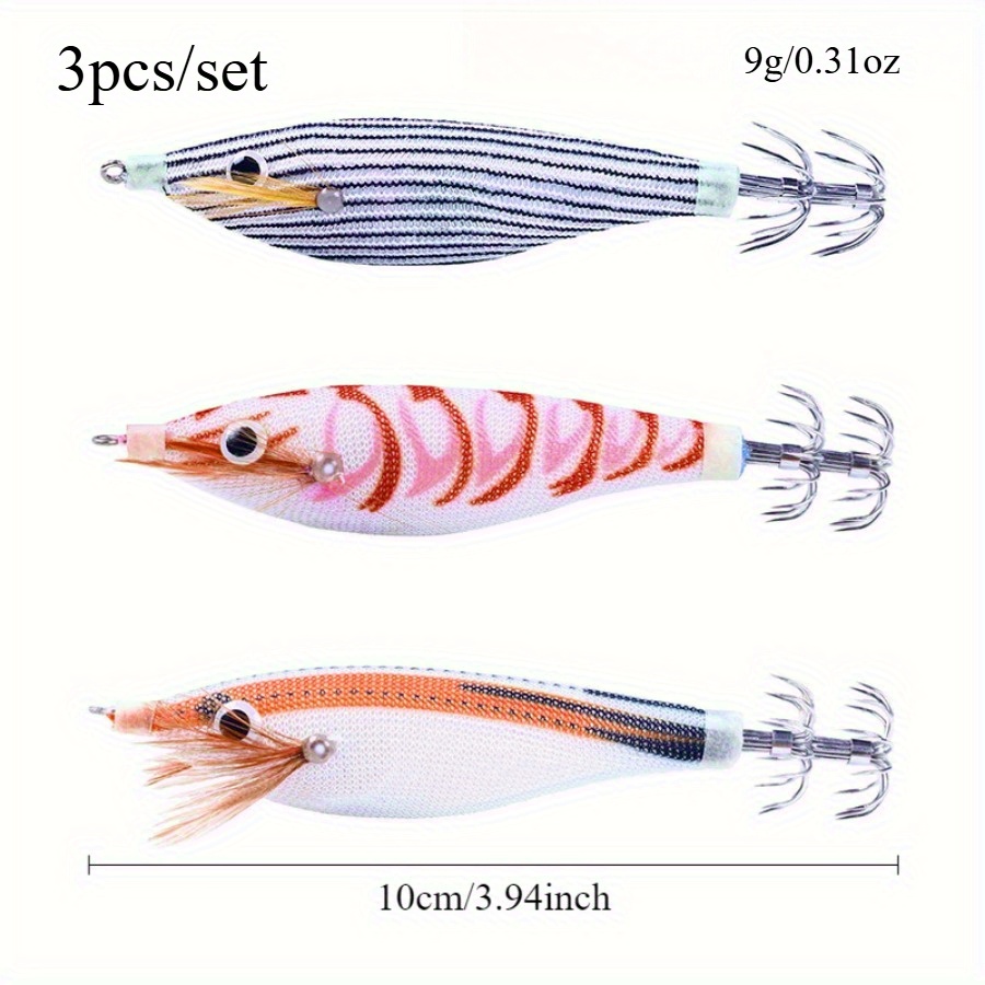 TEMU Avlcoaky 3개/세트 10cm/9g 새우 낚시 루어 발광 오징어 징 훅 새우 루어 인공 하드 베이트