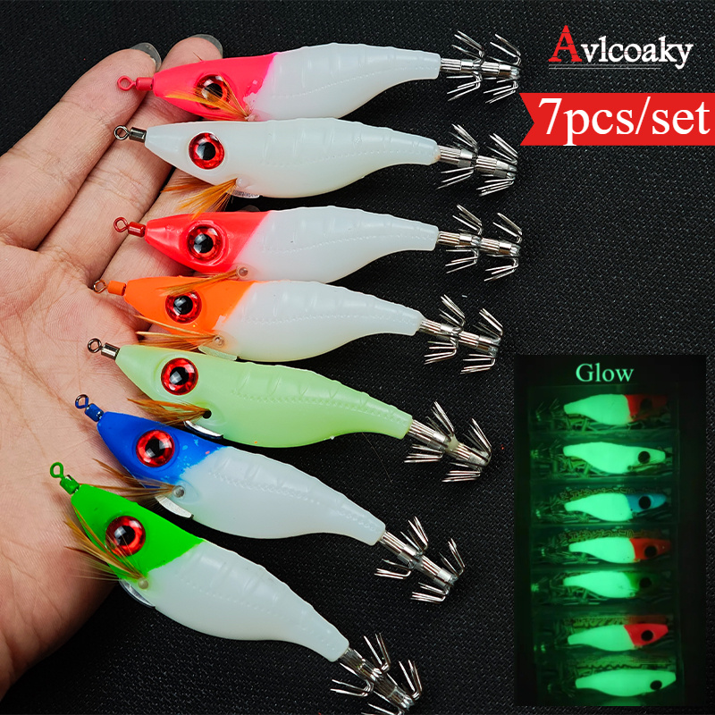 TEMU 7개 세트 야광 바이오닉 빅아이 새우 하드 루어