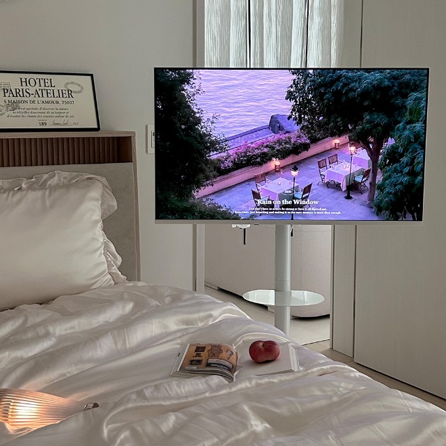 +아임글램 스탠드 화이트 이동식거치대 모니터거치대 TV스탠드추천 추천 케이블 조교 디자 엔산마운트