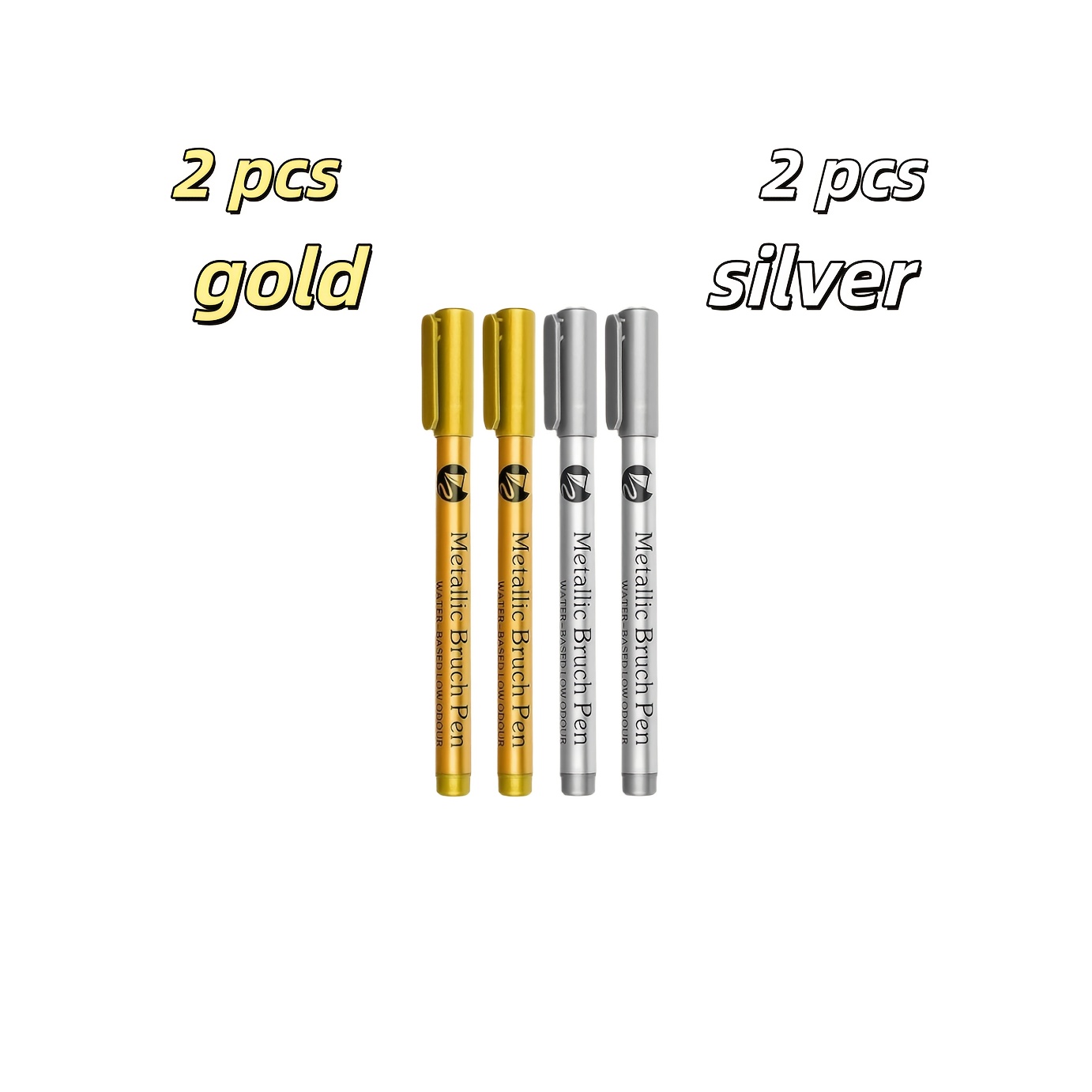 TEMU 4개 골드 & 실버 영구 마커 세트 - , 카드, 페인팅, 포스터, 스톤 공예에 적합 - 뉴트럴 펜 아트, 세라믹, 유리 공예에 | 다양한 표면에 사용 가능, 창작 및 공예 필수품