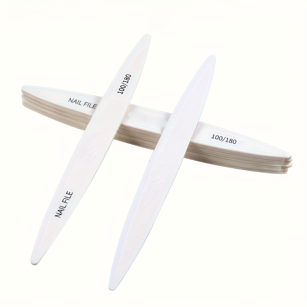 TEMU 네일 아트 도구가 포함된 24개 신상 디자인 네일 파일 세트. 프로페셔널 품질의 흰색 및 회색 타원형 모양.