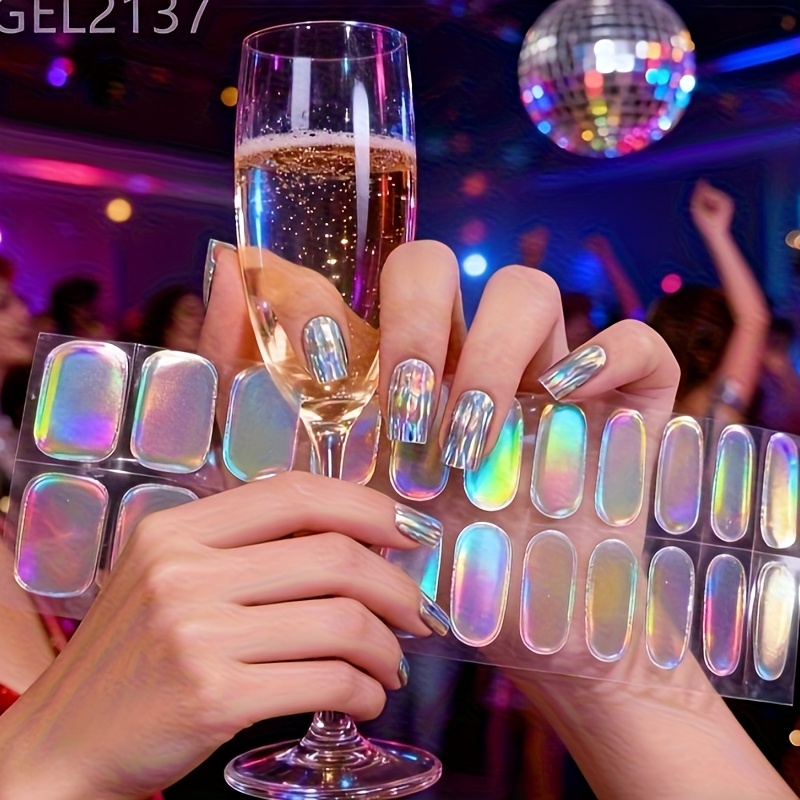 TEMU 미러 홀로그래픽 네일 스티커 - 접착제 필요 없음, 레트로 글리터 미러, 파티, 웨딩, 프롬을 위한 즉석 DIY 네일 아트 (레진)