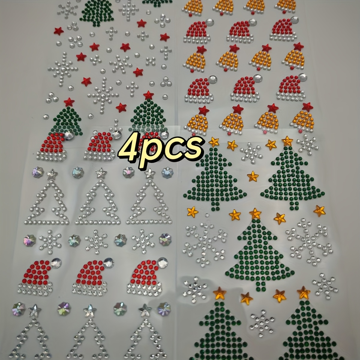 TEMU 4개입 자가 점착 라인스톤 스티커 - 광택 크리스마스 트리, 눈꽃, 별, 장식 장식 페이스 쥬얼리 파티 메이크업, 네일, 바디 장식용 - 겨울 휴일 크리스마스 장식, 크리스마스 장식에 적합