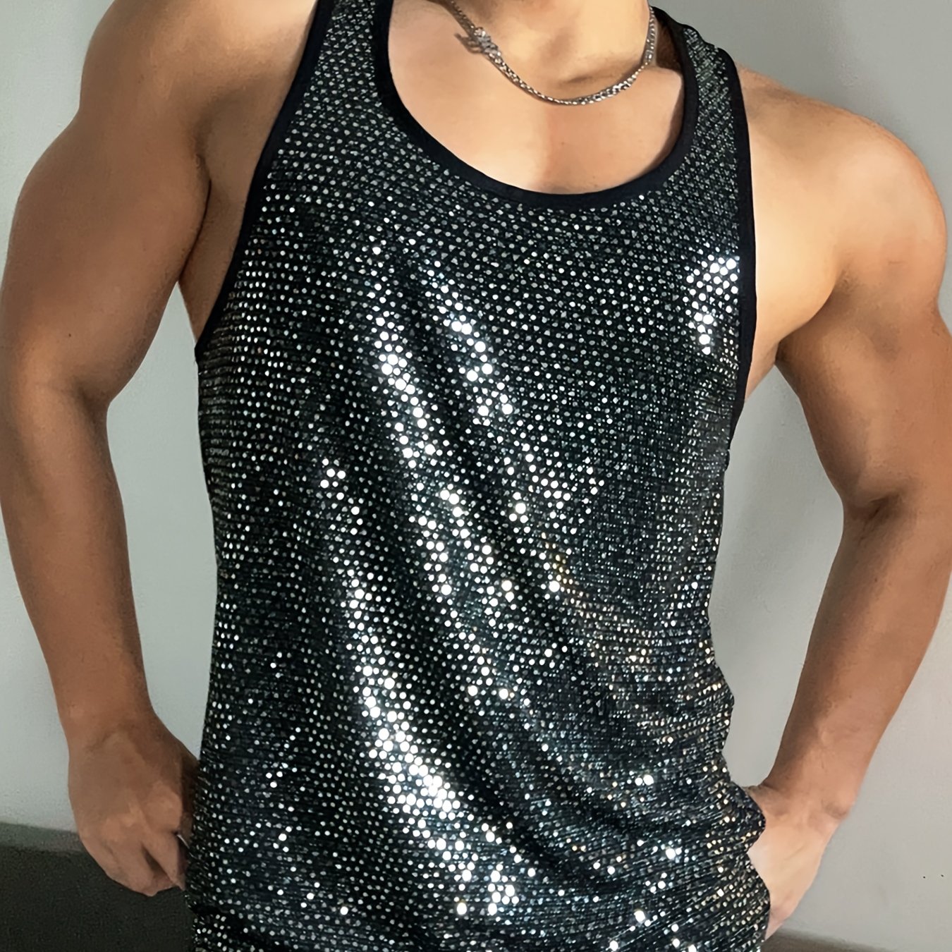 TEMU 남성용 시퀸 조끼, 남성용 신축성 조끼