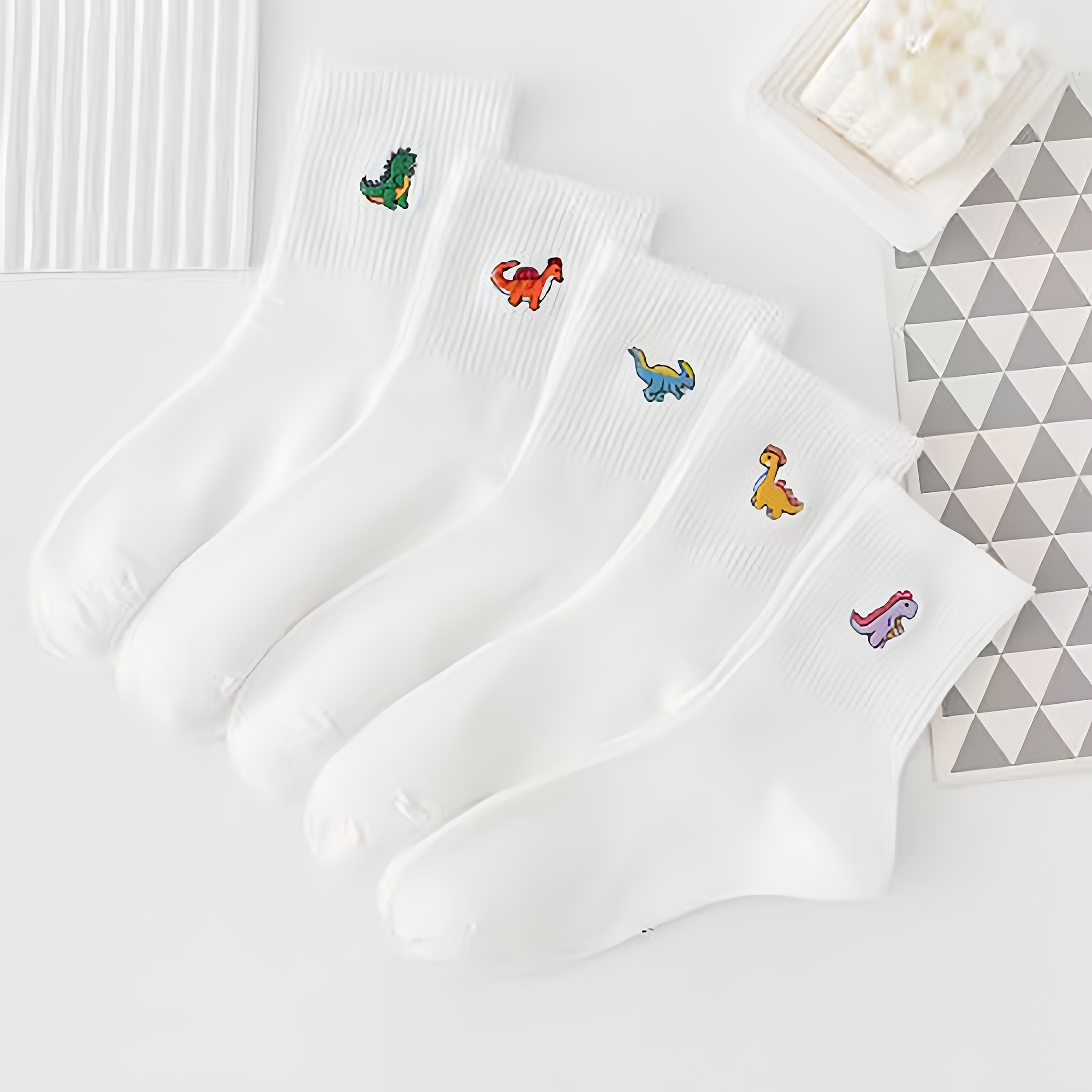 TEMU 여성용 미드 캐프 양말 5켤레 세트, 사계절용 자카드 공룡 프린트, 캐주얼 롱 다용도 양말