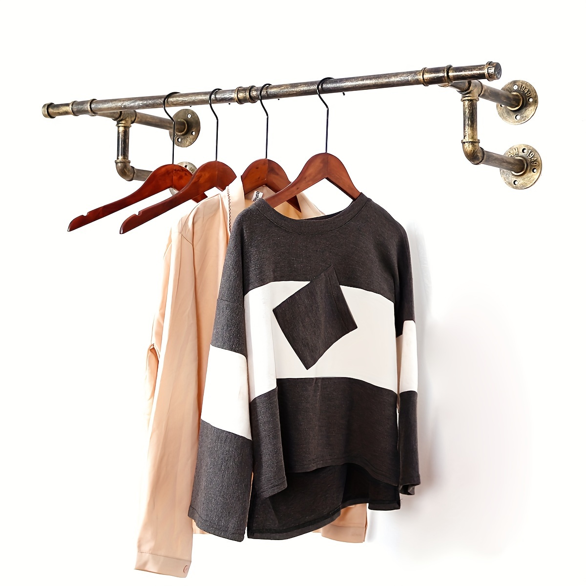 TEMU 헤비듀티 산업용 파이프 의류 랙, 벽걸이 금속 디스플레이 선반 4개의 S-후크 포함, 빈티지 미국 컨트리 스타일 홈 & 소매 장식용, 셔츠, 가방 및 액세서리 걸기에 완벽, 의류 보관 | 빈티지 미국 스타일 | 금속 구조, 선반 장식