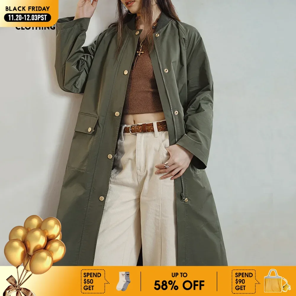 2025년 가을 여성용 오버사이즈 방수 카키 베이지 아미 그린 레인코트 숏 재킷 트렌치